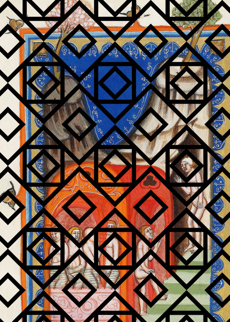Слева: Томаc Ле Мьезьер. Краткое изложение учения Раймунда Луллия. Карлсруэ. Государственная библиотека Бадена. Справа: «Апокалипсис» королевы Марии. Лондон. Британская библиотека