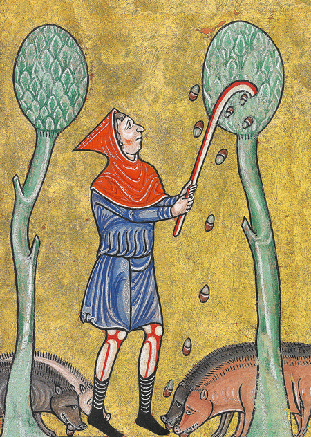 Слева: Иллюстрированная Библия. Балтимор. Художественный музей Уолтерс. Справа: «Бестиарий» и трактаты Гуго из Фуйуа. Лос-Анджелес. Музей Дж. Пола Гетти