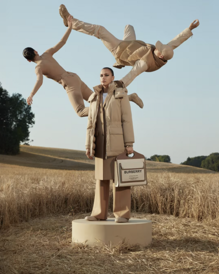 В рекламе 2021 года «Burberry Open Spaces», которая посвящена свободе и самовыражению бренд работает с темой наследия и новаторства, которую заложил Томас Берберри. Полеты героев, их притяжение к друг другу — все это создает общий нарратив о сближении, связи друг с другом и инновациях.