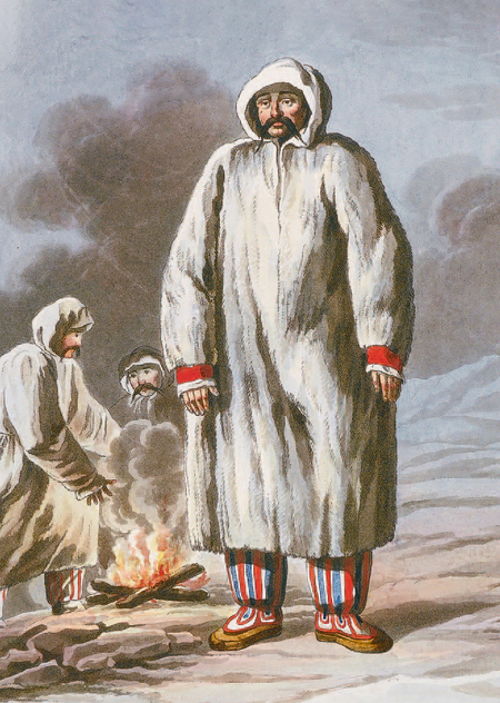 Слева: Самоеды, одетые в медвежьи кожи. Справа: Коряки