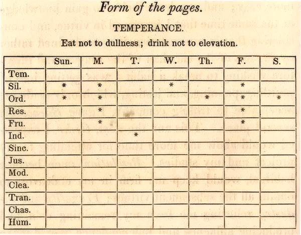 Таблицы добродетелей Франклина из книги «Автобиография»