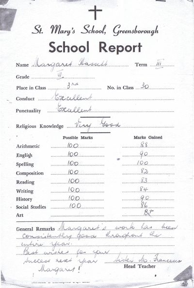 Викторианский школьный табель с графами «Поведение» (Conduct), «Пунктуальность» (Punctuality).