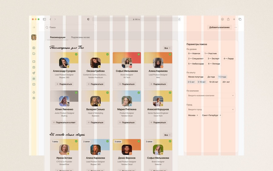 2.1. Подтвержденные связи Каждая связь — это не подписка, а подтвержденное взаимодействие. Видно где работали вместе, над чем, когда. Это превращает сеть в настоящую рабочую карту контактов.