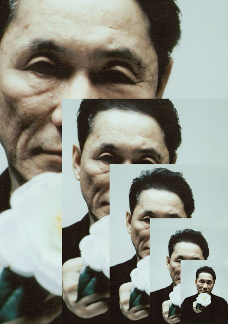 В книге я использую приём увеличения сетки вместе с содежранием так, как будто вы смотрите в видоискатель, и через него приближаетесь к Такеши Китано, детально рассматривая его жизнь и творчество.