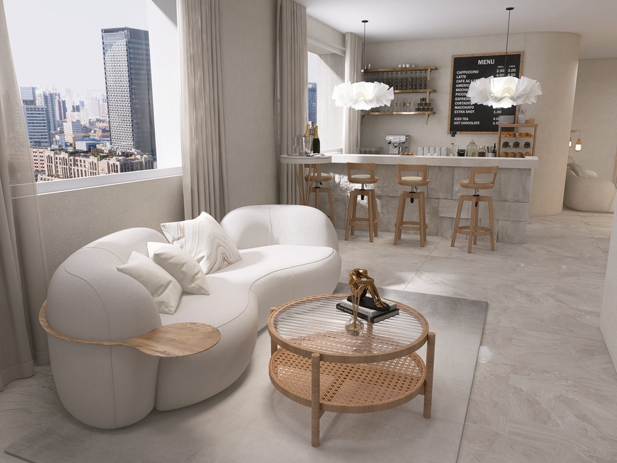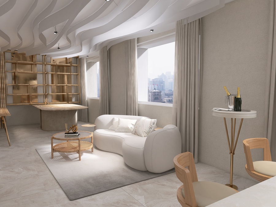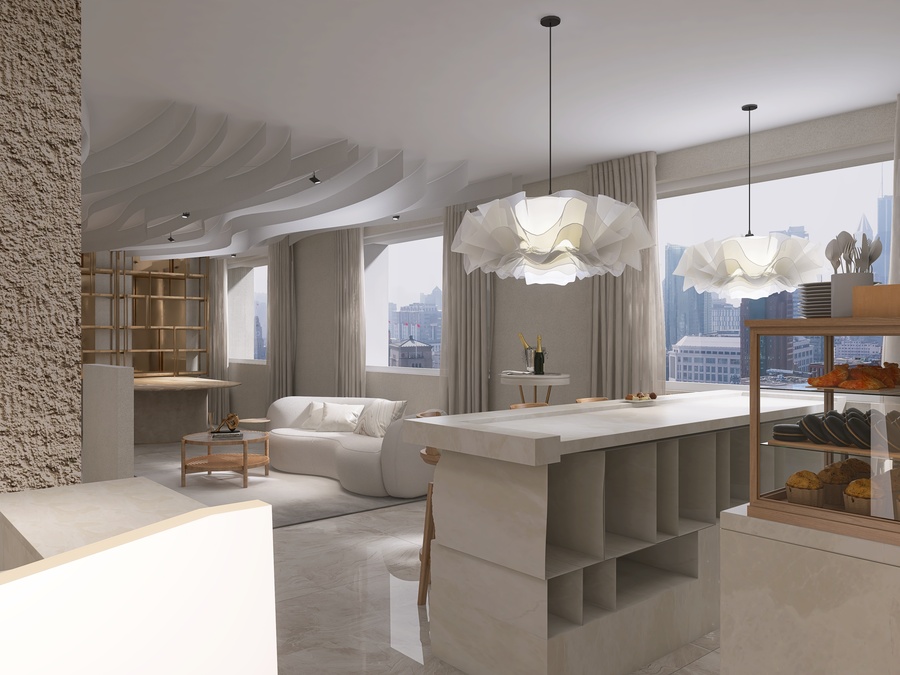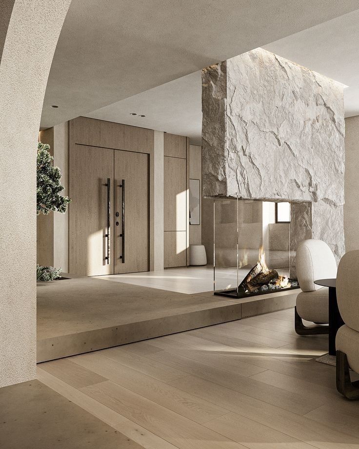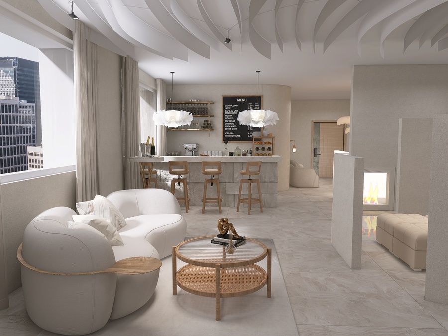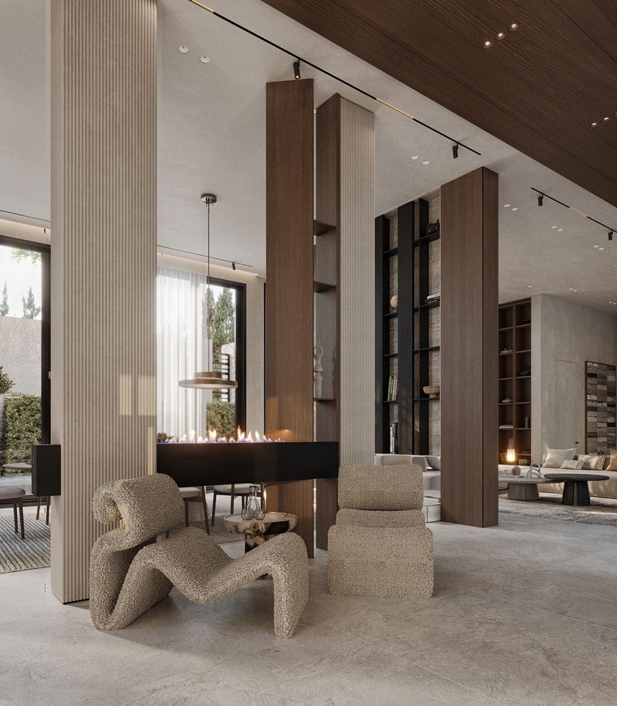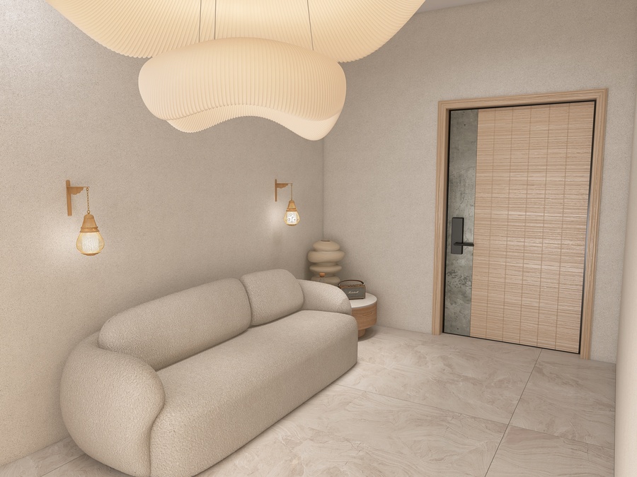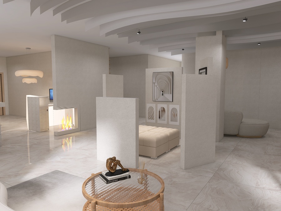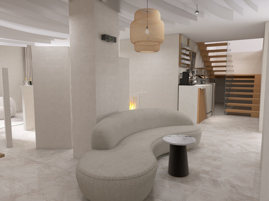 Плавные линии, чистые геометрические формы. Интерьер вдохновлён дюнами, их текучестью, мягкостью линий и гармонией с природой.