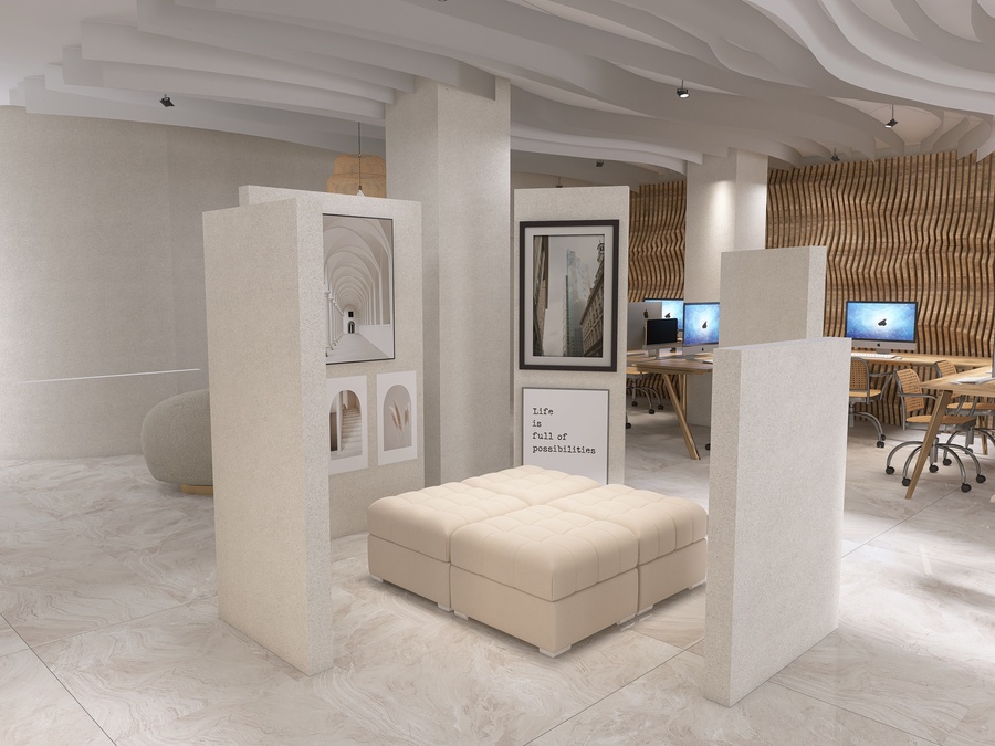 Создать пространство, вдохновлённое природной эстетикой дюн, где текучесть форм и природные материалы отражают динамику и адаптацию. Офис станет местом, где дизайн рождается из гармонии с природой, а минимализм подчёркивает чистоту и простоту идей.