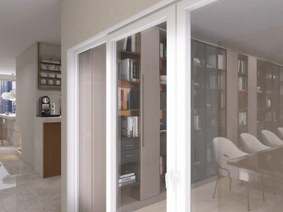 «Вихрь»: Подвесная инсталляция, напоминающая движение песка. «Мираж»: Галерея вдохновения в виде перегородок. «Дюны под песком»: Стол из эпоксидной смолы с песком. «Световая воронка»: Стена для проектора, изогнутая изгибами дюн, образующая интегрированную зону отдыха. «Песчаный очаг»: Сквозной камин в стене.