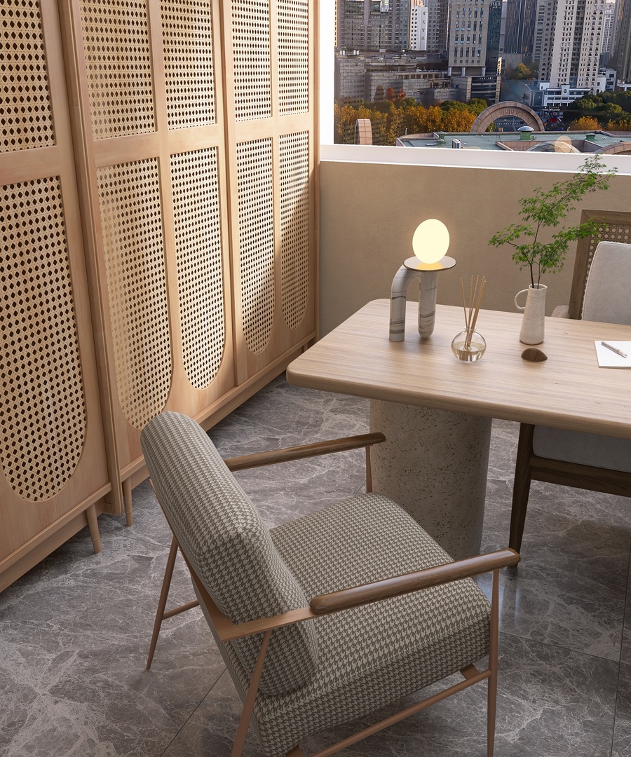 Смешанный стиль с мотивами минимализма, ваби-саби, джапанди с биофильными акцентами