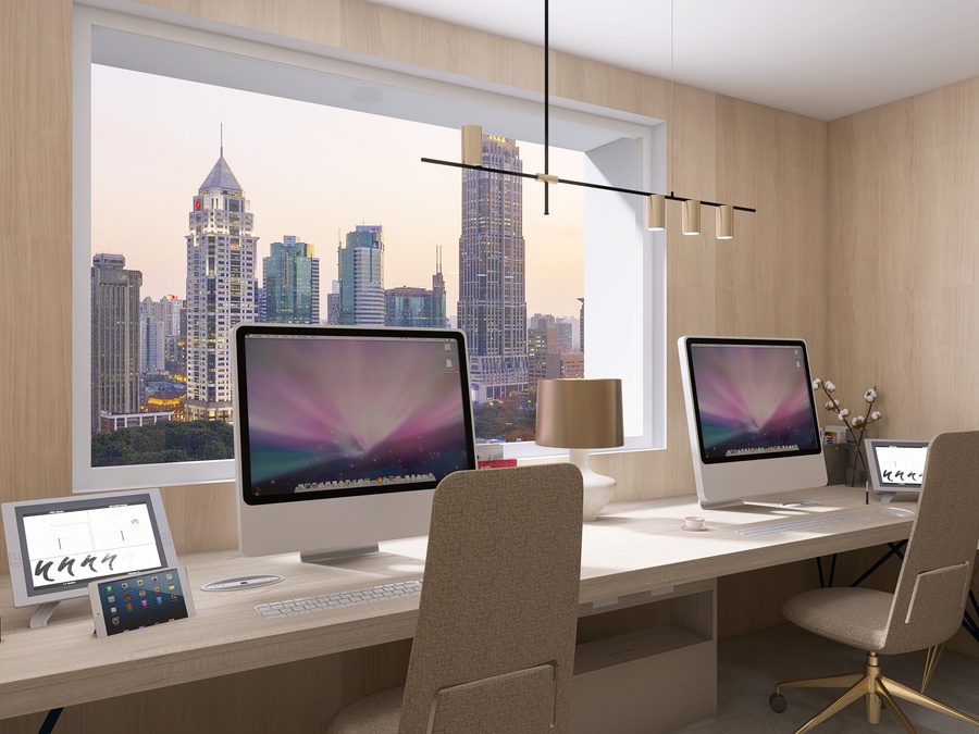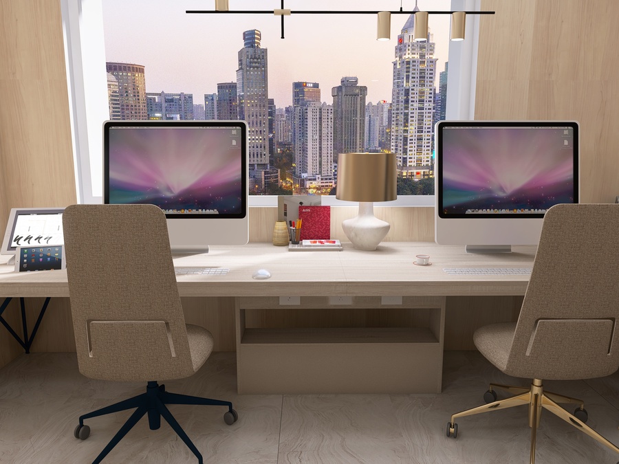 Рабочие зоны определены с разделением, обеспечивая приватность, но при этом сохраняется открытое пространство.