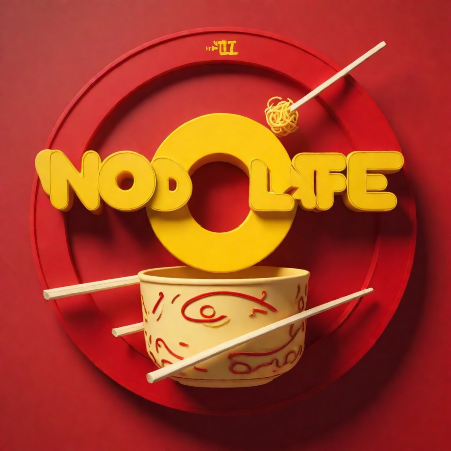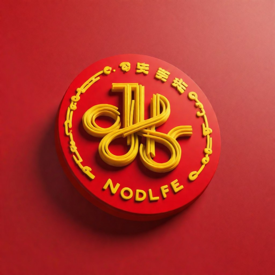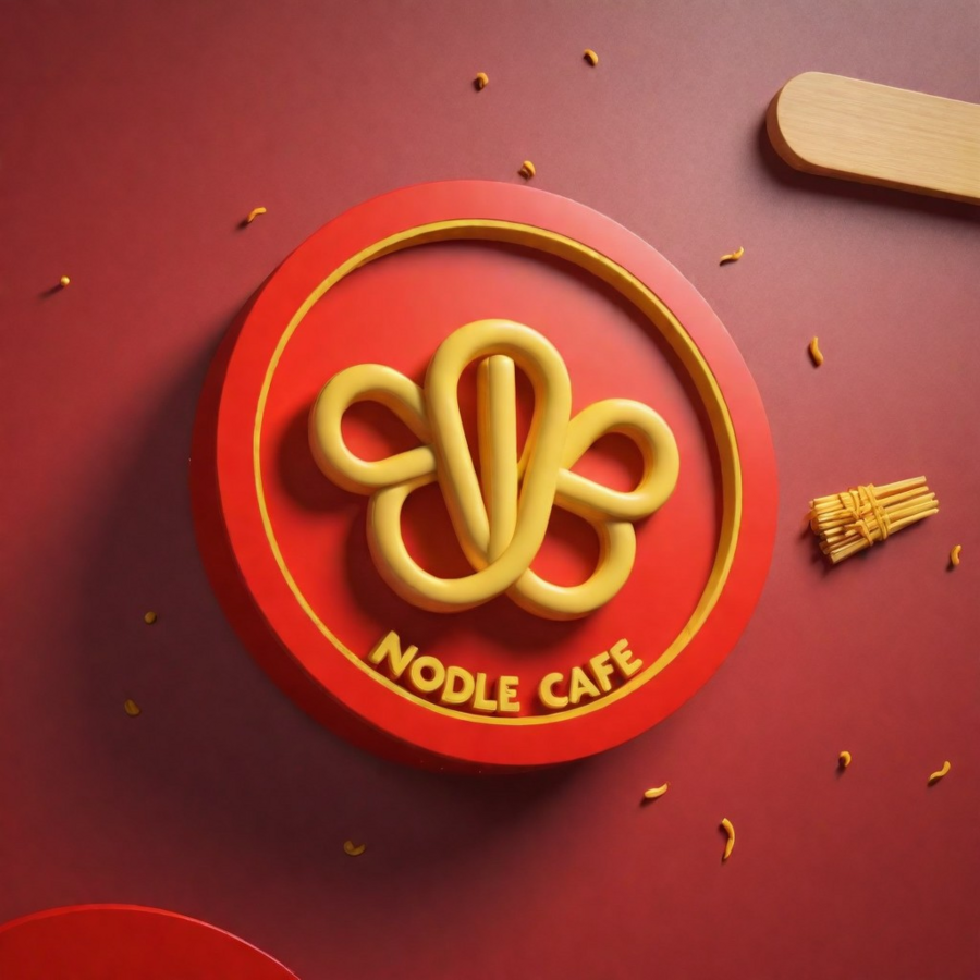 3d style colorful logo sign for noodle cafe, yummy, asian aesthetic, red orange yellow colors --v 6.0