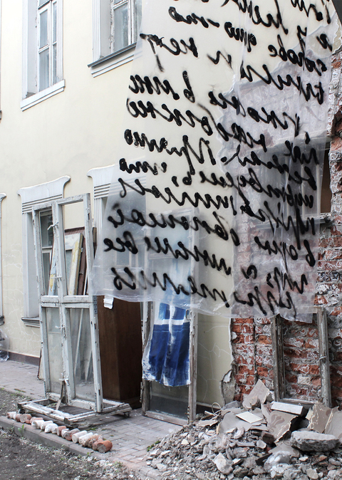 Работа Алины Рыбальченко ведет диалог с археологией, артефактами и памятью, которая усиливается найденными в пространстве предметами, текстами из писем Анны Голубкиной о любви к мастерской и работе в Москве. Художница создает композицию из различных объектов и, казалось бы, из ненужных предметов дома, ожидающего реставрации. Эти вещи некогда были его неотъемлемой частью. Руина — промежуточное состояние между старым и новым, между мгновением и вечностью, между воспоминанием и идеями на будущее.