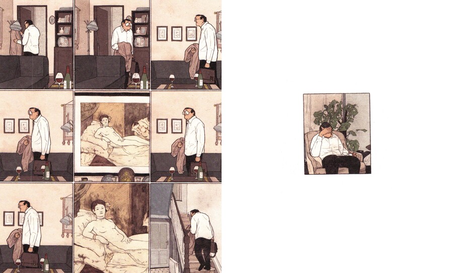 Одним из главных событий в комиксе можно назвать тот момент, когда герой запечатлевает свою соседку, сравнив это с картиной в музее. Комикс делится на две половинки, в которых искусство оказывает немалое влияние на героя, вызывая апатичное настроение. Во второй части оно практически выходит из привычной жизни героя, полностью меняя его рутину, многие фреймы практически повторяют друг друга, отображая монотонность событий.