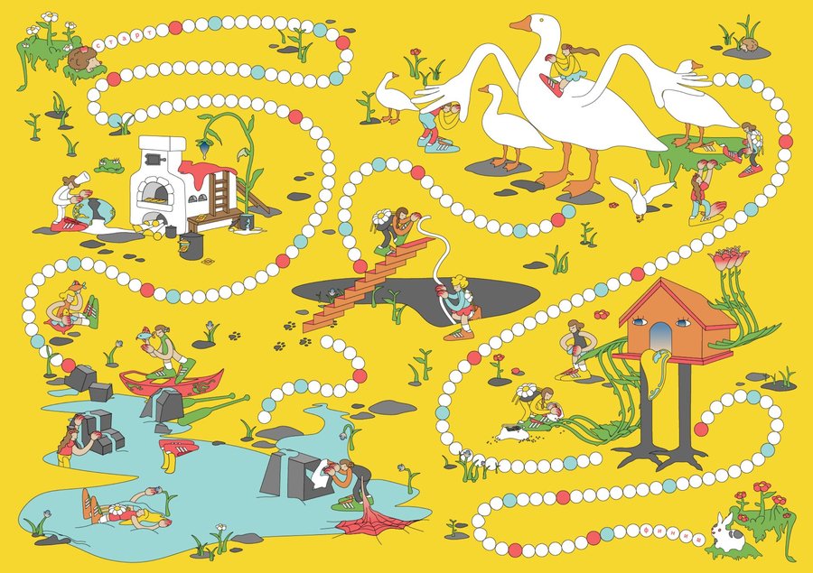 Настольная игра по мотивам сказки «Гуси-лебеди». Коварные гуси-лебеди часто крадут детей, но на этот раз птицы унесли вашего брата. Постарайтесь пройти все препятствия, как можно быстрее, чтобы спасти его.