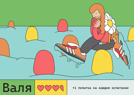 Игроки выбирают фишку и карту персонажа. От того, какого персонажа выберет игрок, будет зависеть прохождение игр на точках с персонажами-противниками.