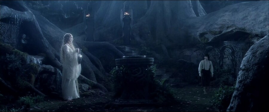 Ритуальная площадка имеет центрическую композицию с алтарем, которая задает сакральность обстановки. При входе в святилище Леди Галадриэль сопровождают фигуры Весталок, дополняя образ героини как могущественной и мудрой правительницы.