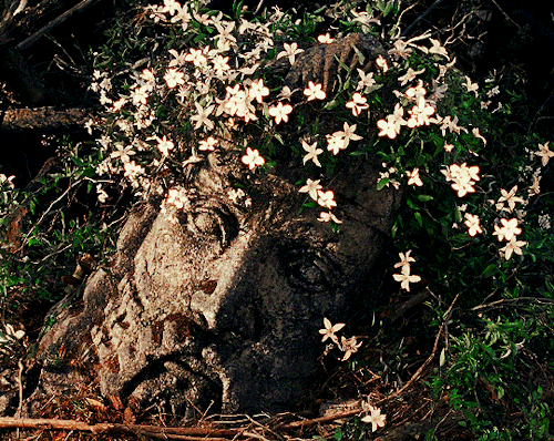 Подобное действие мы видим в сцене: зритель сожалеет о надругательстве над скульптурой, однако голова поросшая белыми цветами символизирует чистоту и надежду на воскрешение.