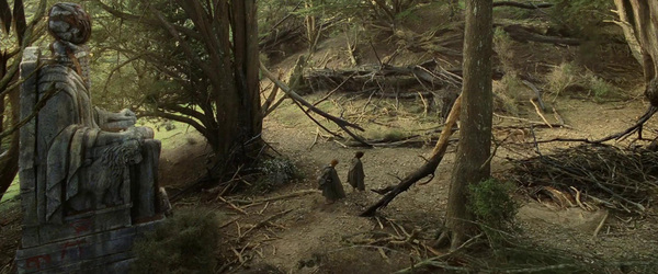 В сцене со смертью Боромира, скульптура становится немым свидетелем человеческих потерь. Сами статуи представляют собой идолоподных монахов, потерявших собственную личность (их лица скрыты под маской как отказ от своего «я», имени и прошлого).