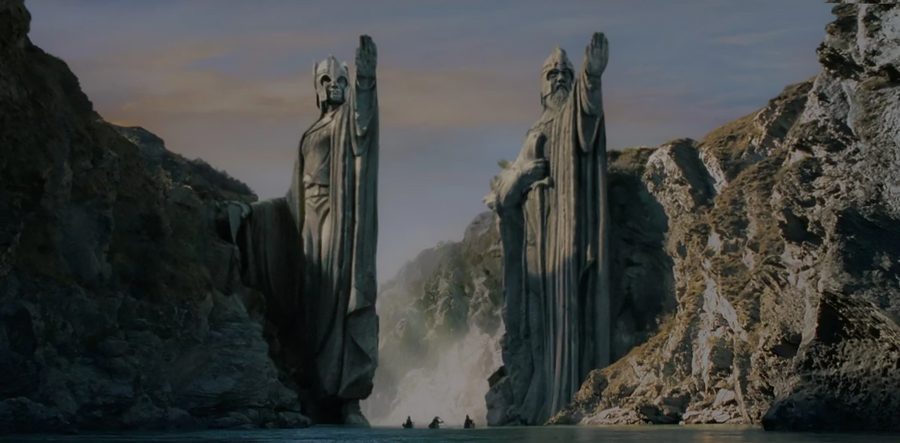 Столпы Аргоната, также известные как Врата Королей. Они изображают Исильдура и Анариона (или Элендиля в фильмах), древних королей Гондора, и отмечают северную границу их королевства. Высеченные в скалах по обе стороны реки Андуил они поражают своим размером, однако при этом имеют реальные исторические прототипы.