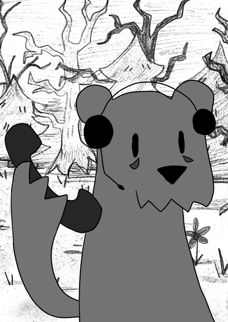 Анимационное упражнение выполнено в смешанной технике: компьютерная покадровая анимация и нарисованный тушью и карандашами фон.