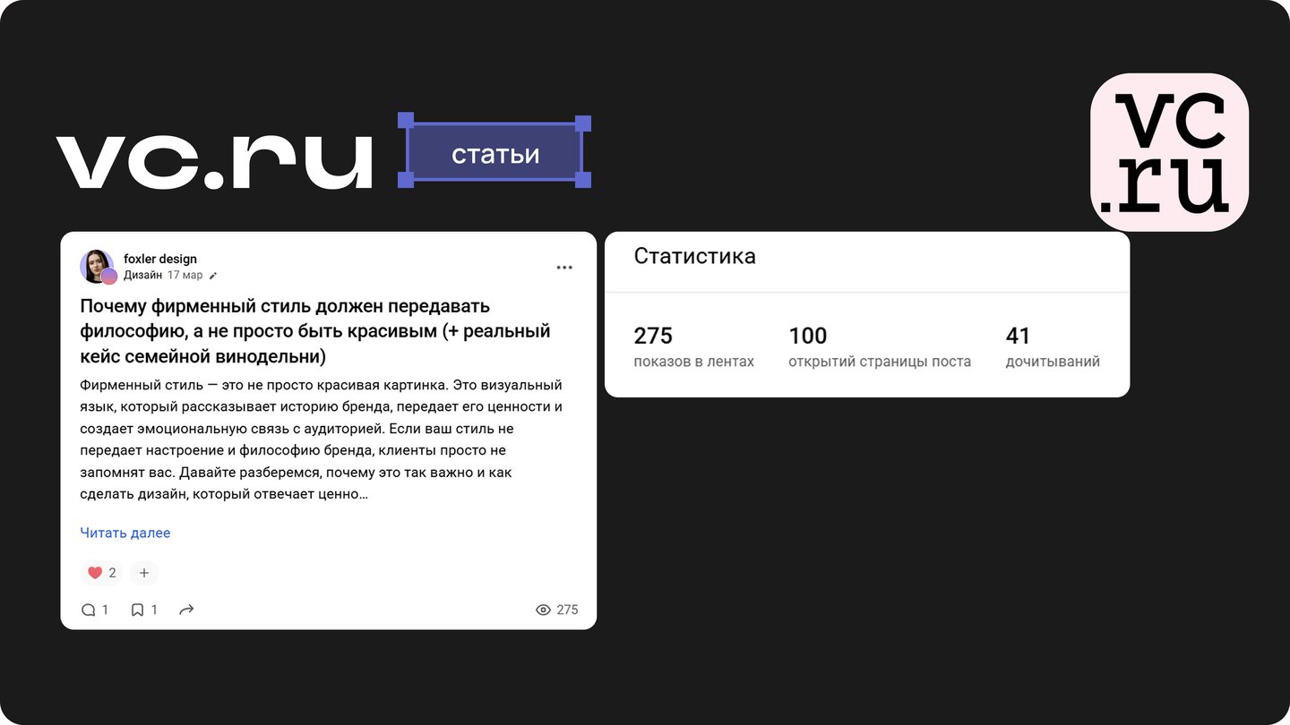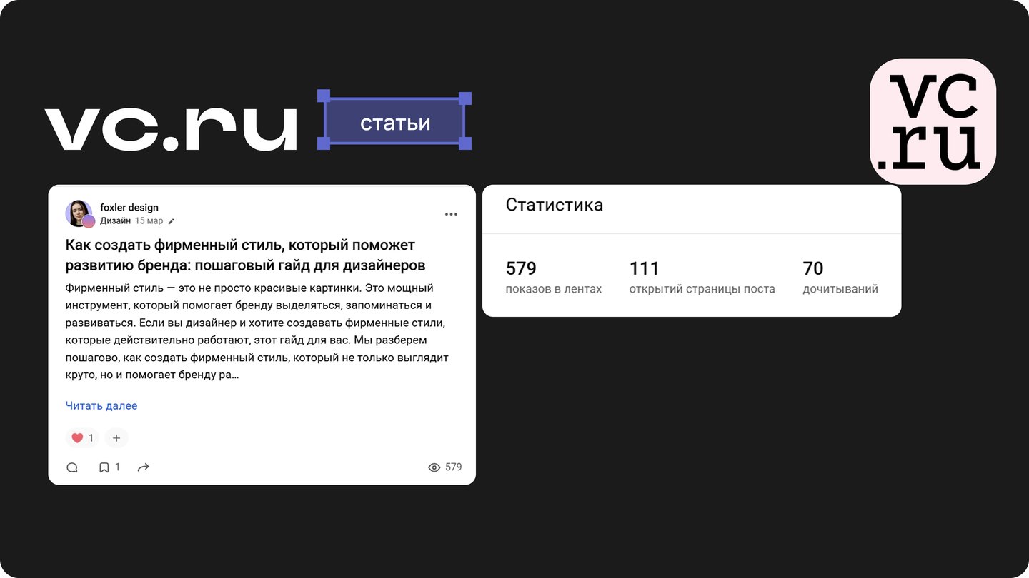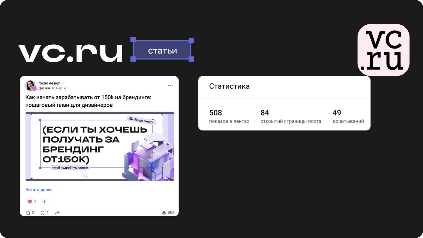 В третьем модуле для меня стояла задача продвинуть свой личный бренд: бренд-дизайнер. В процессе я исследовала различные каналы продвижения: vc.ru, Dprofile, вконтакте, телеграмм, авито. Собрала портфолио, писала статьи и публиковалась на данных платформах. Благодаря использованию различных каналов, мне удалось продвинуть свои услуги, свое портфолио, привлечь новую аудиторию и клиентов.