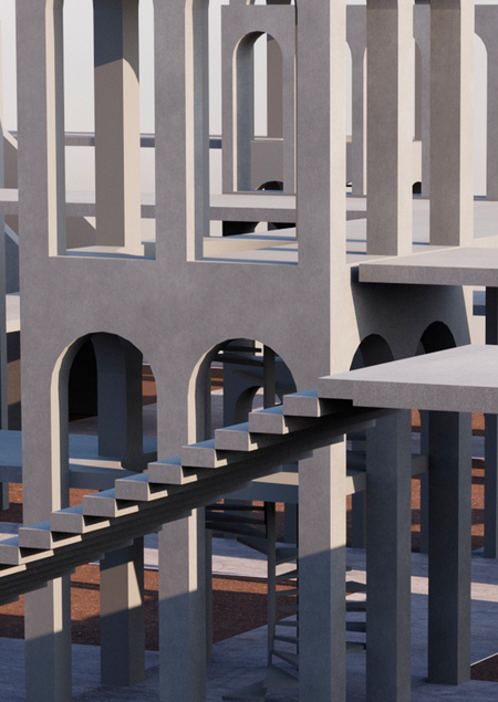 Проект сочетает функциональность и арт-объект, создавая пространство, где люди могут гулять, отдыхать и взаимодействовать с интересной средой. Основная идея — игра с уровнями и восприятием пространства, вдохновленная работами Маурица Эшера.