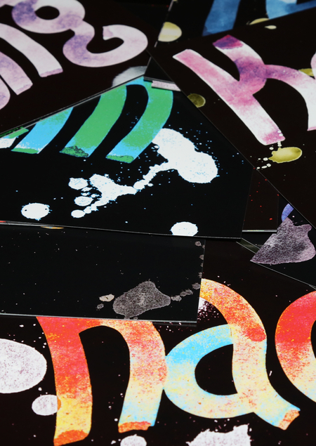 I dedicated my project to lost paintings and the text of a letter that Kuno Amier wrote to his wife. I break the text into 51 words and have each on a separate map sheet to form a linear exhibition. I’m using my handwriting, which is like a modern style. The letters are written with brushes and ink. I also add drops and bright colors in post-processing. In them, I lay the consequences of a fire, a dark background, like a charred one. And the color stains are what even the fire kept from the lovely flowers of Kuno Amier.