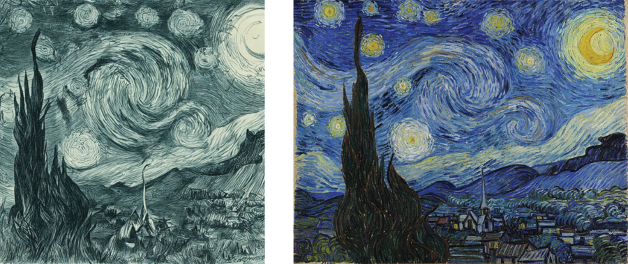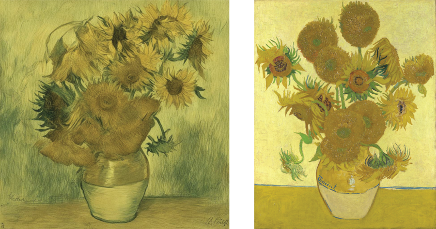1. prompt: «The Starry Night by Van Gogh» 2. «Звездная ночь», Винсент ван Гог, 1889 3. prompt: «Sunflowers by Vincet van Gogh» 4. «Подсолнухи», Винсент ван Гог, 1888