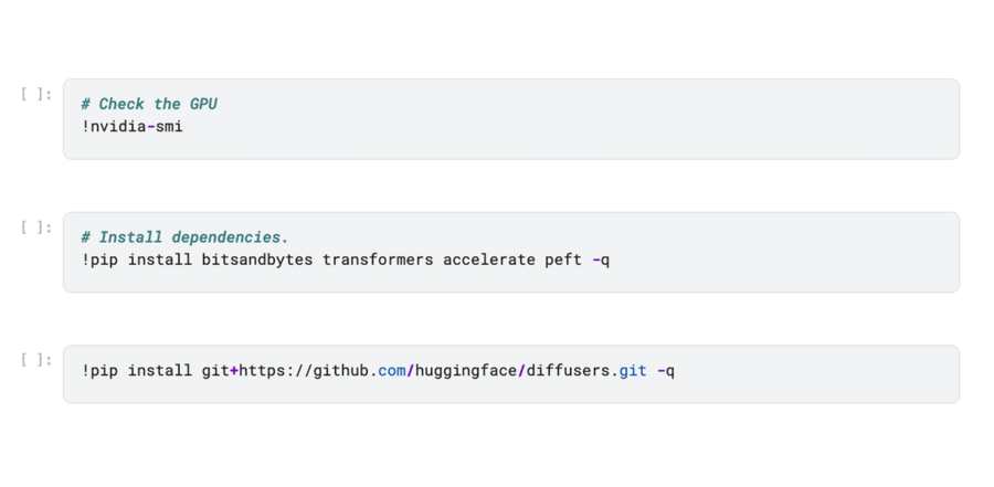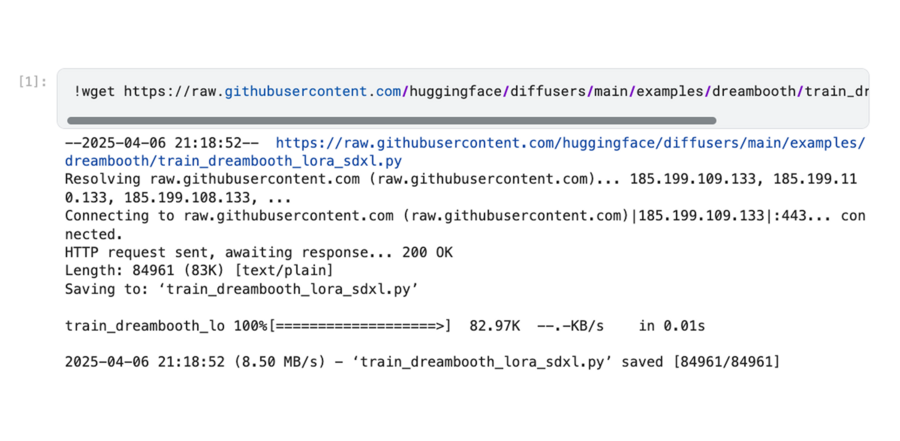Запуск окружения, установка библиотеки bitsandbytes и diffusers, загрузка train_dreanbooth_lora