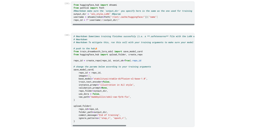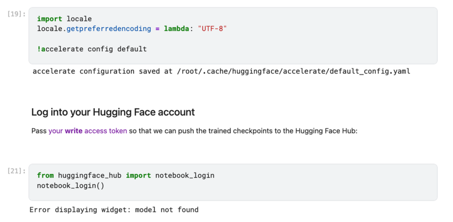 Использование токена HuggingFace, обучение, которое занимает около 60 минут