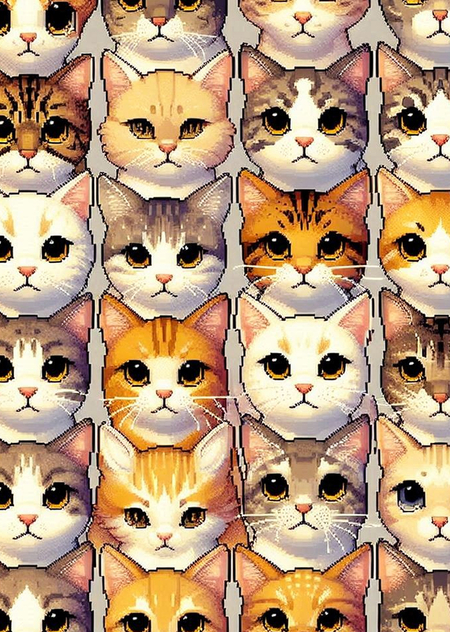 Промт обложки: Generate an image in this exact palette (#FF5E1 #D2691E #B0C4DE #FF4500 #E5AA70): cats of different breeds sit and stare at viewer.