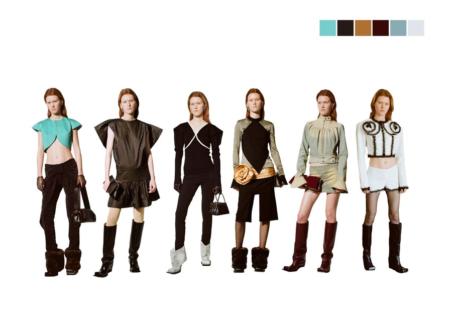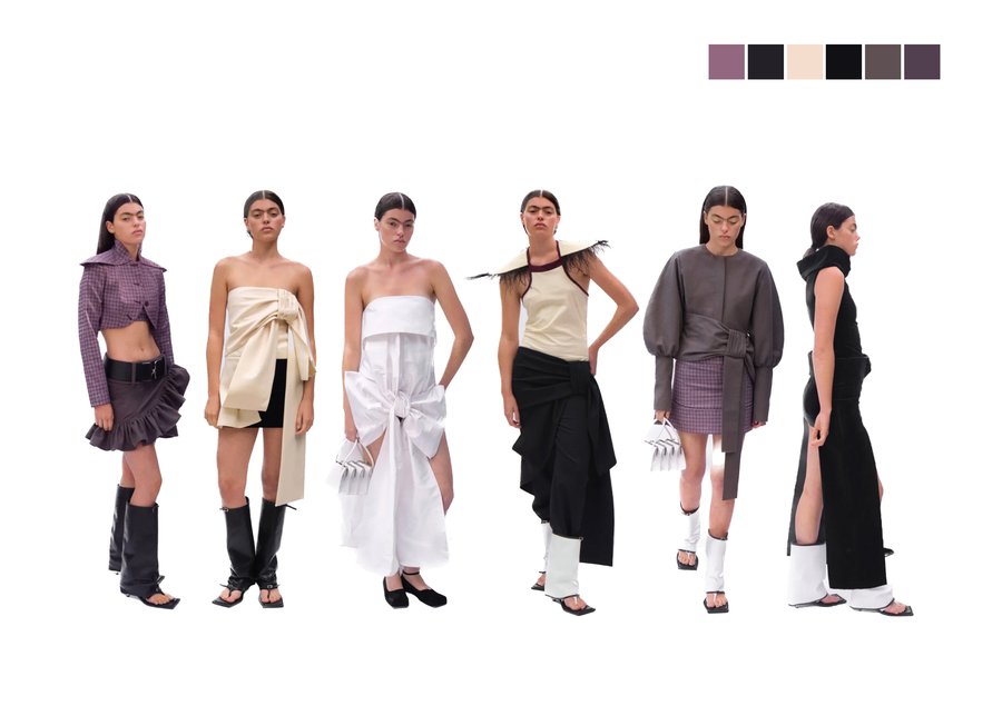 1. Культурном наследии самого дизайнера. Фидан сочетает в себе культуры Молдовы и Азербайджана. 2. Интересных решениях с формой, силуэтами и объёмами. 3. Сочетании противоположностей — в образах балансируют феминные и маскулинные детали, открытые и консервативные элементы, вдохновлённые эстетикой Кавказа.