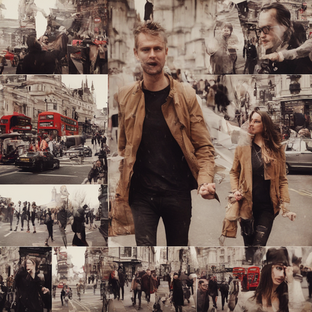 prompt = «photo collage in my style, people, London» // prompt = «photo collage in my style, London, Red bus»