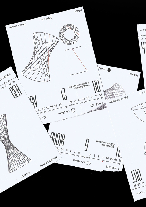 Отрывной календарь показывает ключевые архитектурные гиперболоидные сооружения и принципы гиперболоидности. Календарь посвящен В. Г. Шухову — советскому изобретателю, впервые отрывшему гиперболоидные конструкции