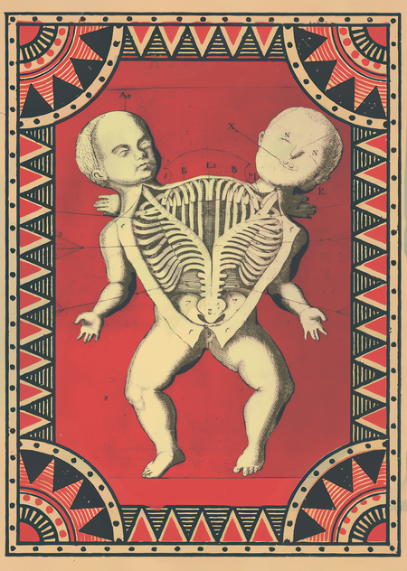 Это редчайший случай выживших близнецов-дицефалов: у сестер на двоих две головы, один торс, две руки, две ноги и три лёгких. Сердце и желудок у каждой свои, но кровоснабжение между ними общее. Два спинных мозга заканчиваются в одном тазу, и все органы ниже талии у них общие.