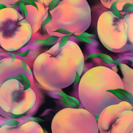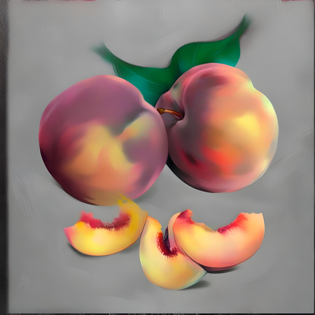 Для начала я решила поэкспериментировать с персиком и посмотреть на то, как его интерпретирует нейросеть. Видно, что нейросеть пыталась повторить такие же мазки, как и в работе художника, а также иногда рисовал кусочки персика, как и в оригинале.