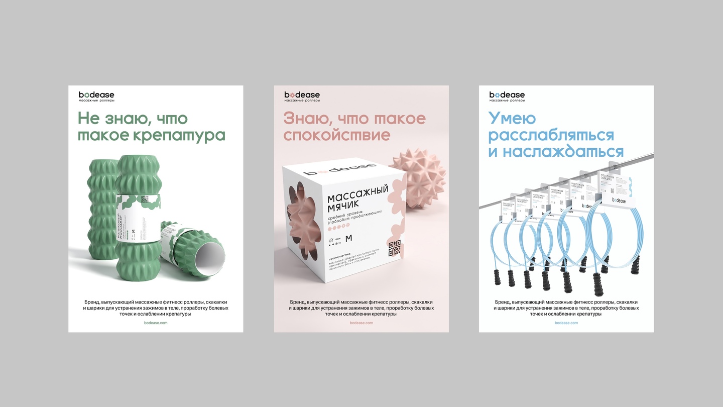 «В этом году я начала активно заниматься спортом, попробовала многие направления (стретчинг, йога, силовые, акробатика). Спорт стал частью моей жизни, и я захотела воплотить эту атмосферу в проектах. Первым „спортивным“ проектом стала упаковка протеиновых коктейлей UPPER, затем я создала шрифт про фехтование. Тема спорта не оставляла меня, и в тот момент, когда я активно занималась растяжкой, ко мне пришла идея создать свои собственные роллеры. Я люблю 3d моделирование и упаковку, и в этом проекте я поняла, что могу применить все эти навыки, а также раскрыть тему, которая меня интересна. Так и родился bodease».