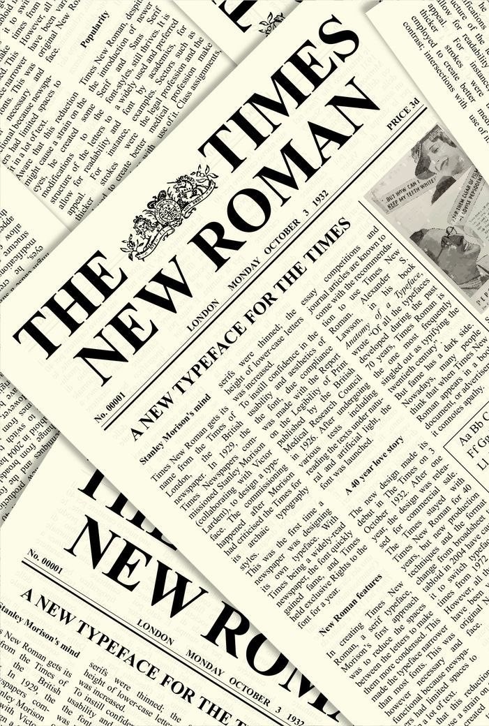 Исторический контекст Times New Roman был разработан британским типографом Стэнли Морисоном в сотрудничестве Виктором Лардентом для типографии «The Times». Шрифт был создан в ответ на необходимость улучшения читаемости и экономии пространства в газетах.