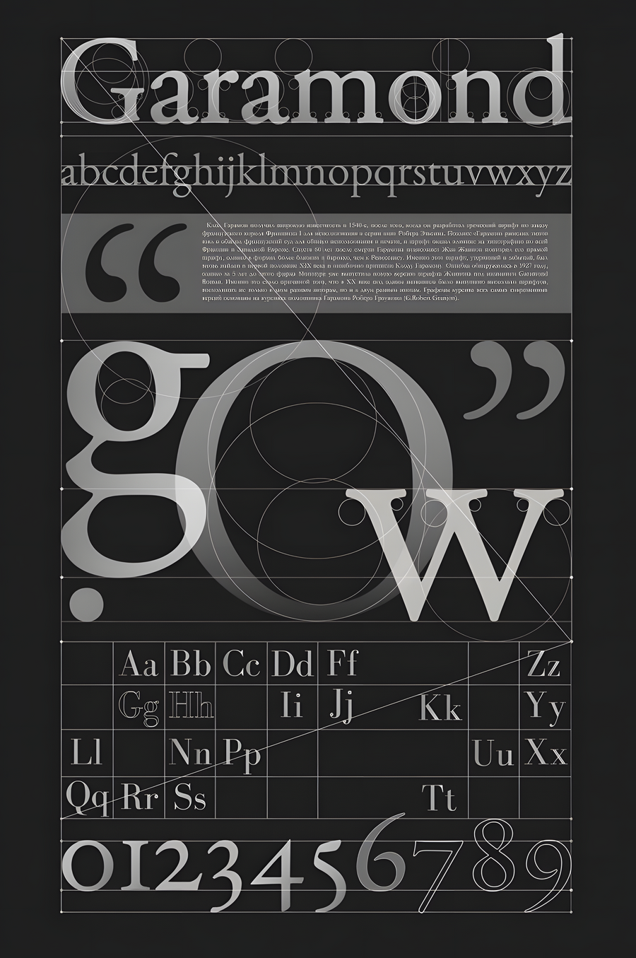 Исторический контекст Шрифт Garamond был разработан в 1530-х годах французским типографом Клодом Гарамонтом. Он стал одним из первых шрифтов, которые были основаны на антиквах, и оказал значительное влияние на развитие типографики в Европе.
