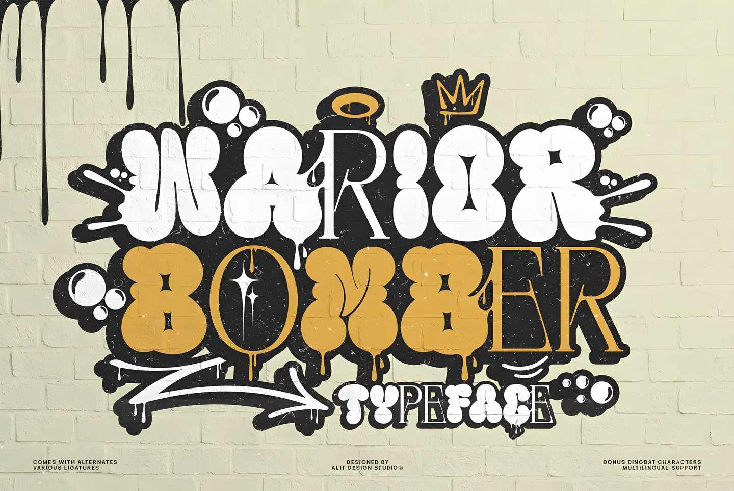3. Warrior Bomber является классическим примером уличного граффити. Даже несмотря на то, что это цифровой шрифт, он имитирует рукописный стиль, что придает ему ощущение динамики и «живости».