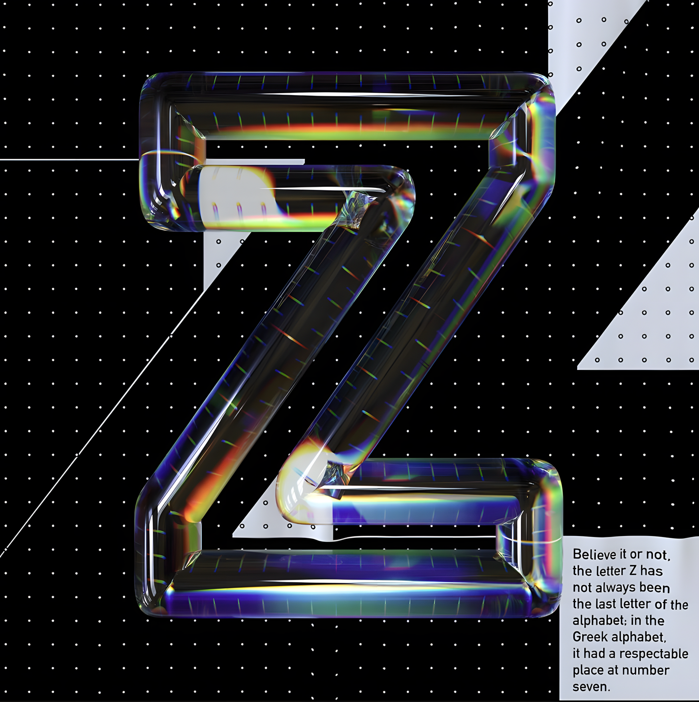 1. Ключевая особенность проекта Alphabet Dispersion — имитация прозрачного материала. По краям буквы видна хроматическая аберрация, которая добавляет футуристичности. Шрифт привлекает внимание, хотя без эффектов был бы обычным гротеском.