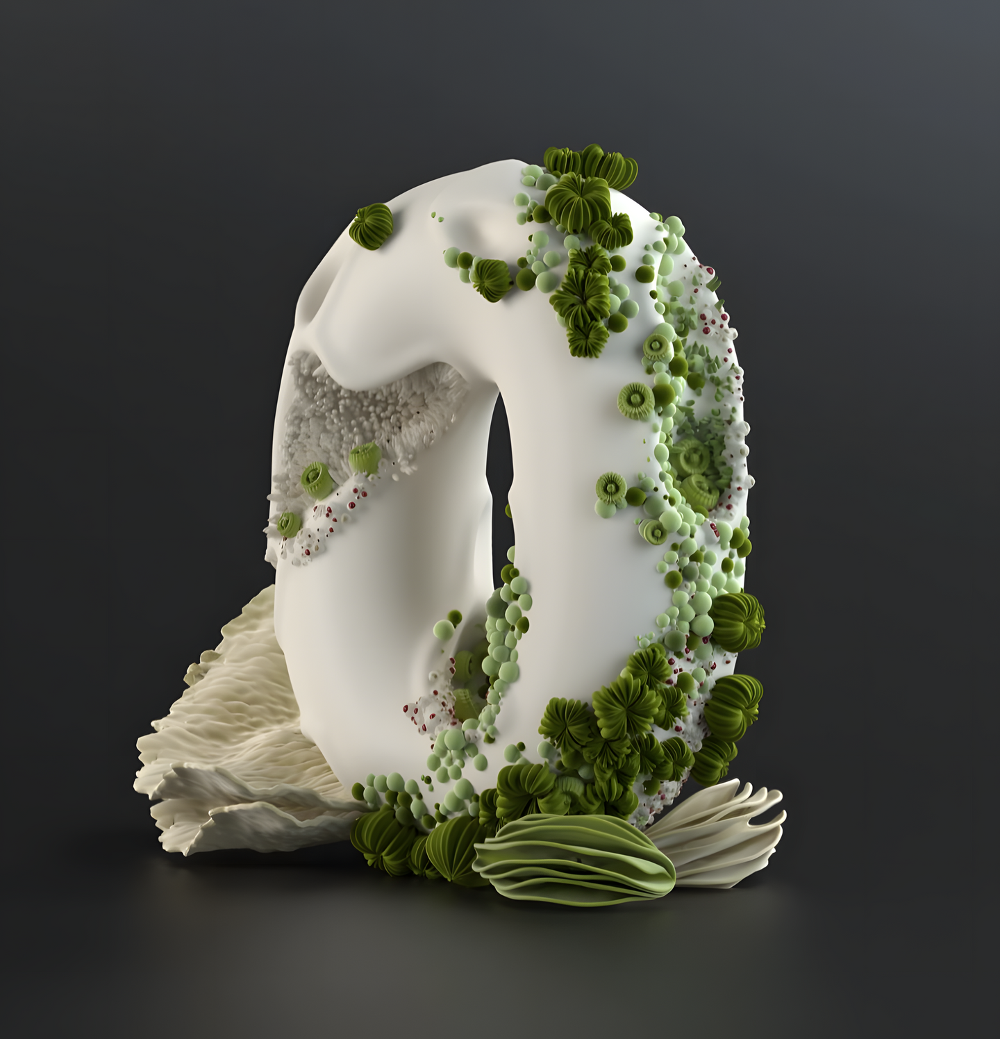3. Nemoritis стала примером гиперреализма в 3D-типографике, где каждый элемент, от формы буквы до мельчайших нюансов растений, проработан с высокой степенью детализации. Более того, работа пронизана определенной тематикой, что делает его идеальным для узконаправленных проектов.