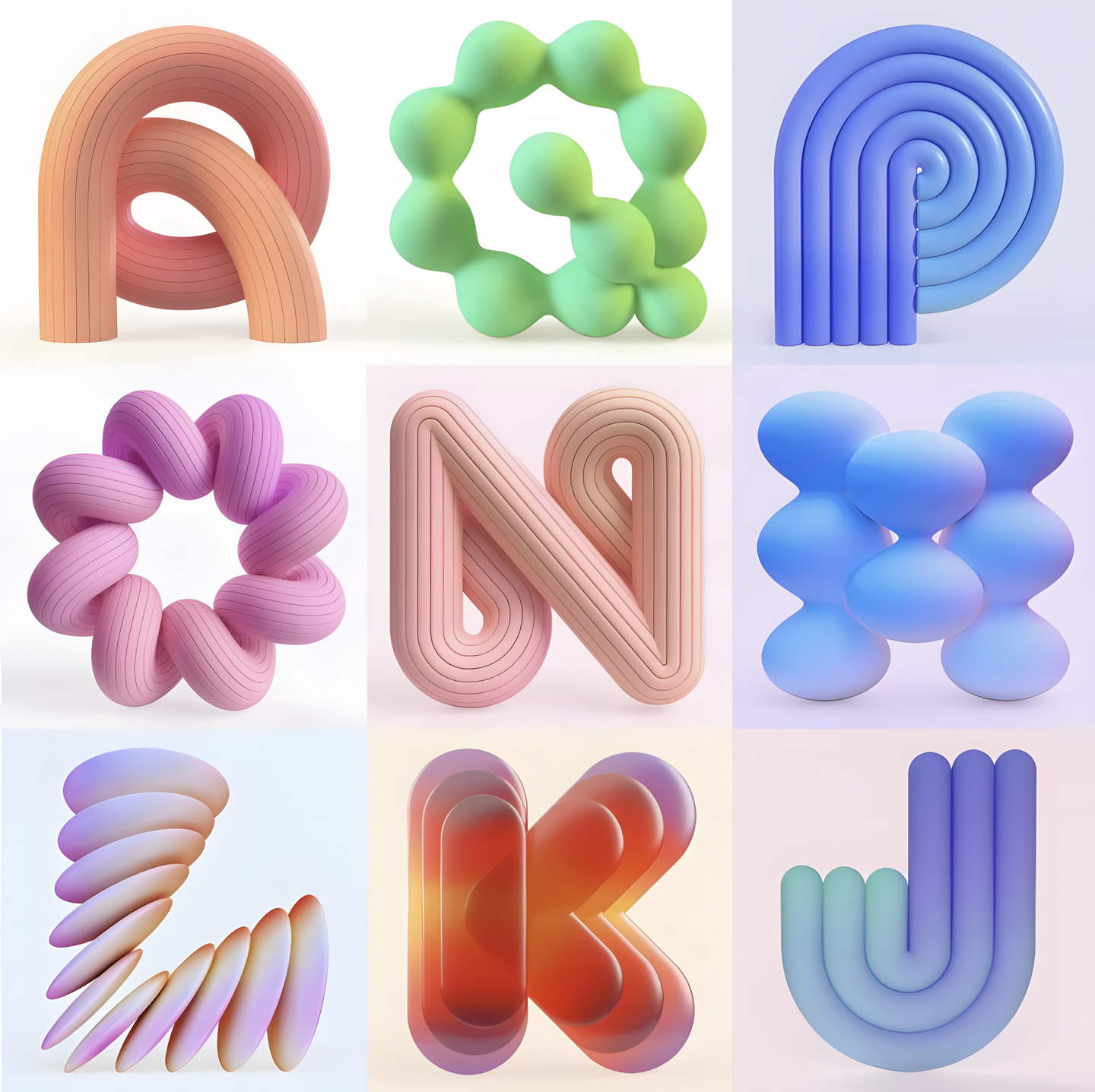 2. Все представленные буквы в шрифте для 36 Days of Type уникальны благодаря сочетанию 3D-рендеринга, пастельных цветов, минималистичного стиля и разнообразия форм. Он представляет собой интересный пример современного типографического дизайна, который ориентирован на создание визуальных впечатлений, а не только на функциональность.