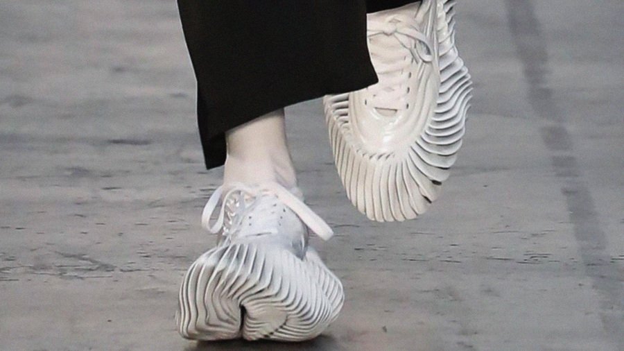 (02) Не только в верхней одежде используются образы, взятые из биосферы планеты: так, Reebok в коллаборации с Botter в 2023 году выпустили коллекцию кроссовок, детали которых традиционно напечатал 3d-принтер. Вдохновение же было взято из живого мира, а именно из причудливой формы моллюска-мурекса, раковина которого ассоциируется с богиней Венерой — именно поэтому проект был назван Venus Comb Murex Shell.