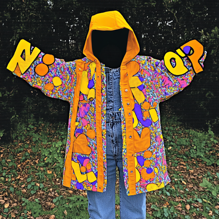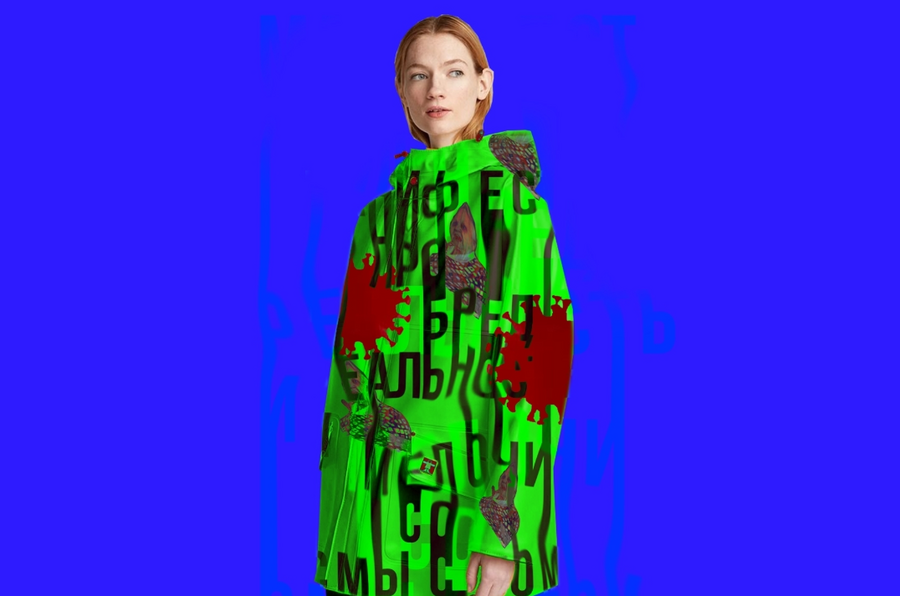Промт для дождевика: «simple raincoat „Trivialis“, font Helvetic, bold» + сгенерированный плакат, как стиль и сгенерированное лого, как изображение + изображение дождевика из pinterest, как изображение. Так как ии не понимал, что именно рисовать.