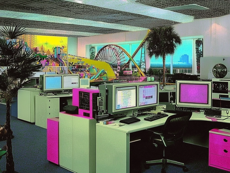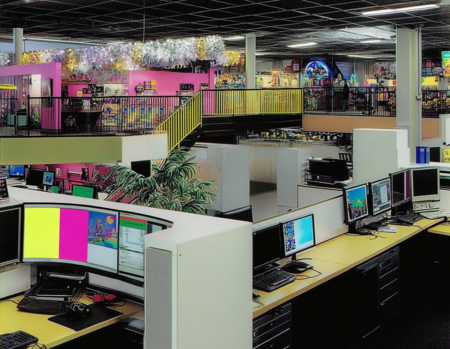 Промт для пространства офиса: «management office of amusement park» + сгенерированные постеры, как стиль.