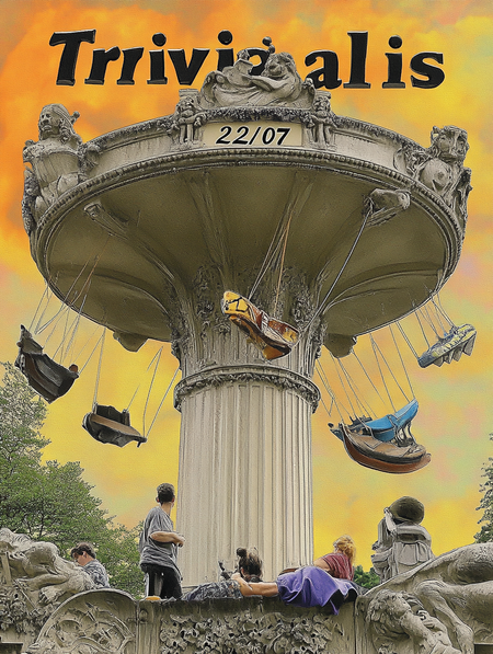 Промт для промо постеров и промо инсталляций: «promo poster for amusement park with text „Trivialis“, font Helvetic, bold» + плакат из старого проекта, как стиль. Шрифт был указан исключительно для понимания Midjourney, что нужен именно текст.