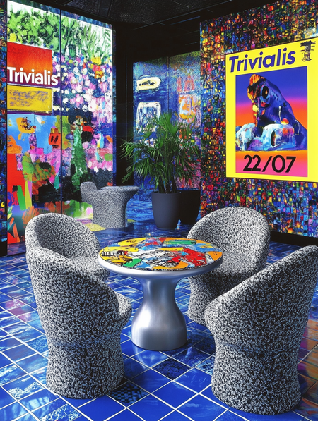 Промт для логотипа: «simple logo „Trivialis“ for amusement park, font Helvetic, bold» + сгенерированный плакат, как стиль.