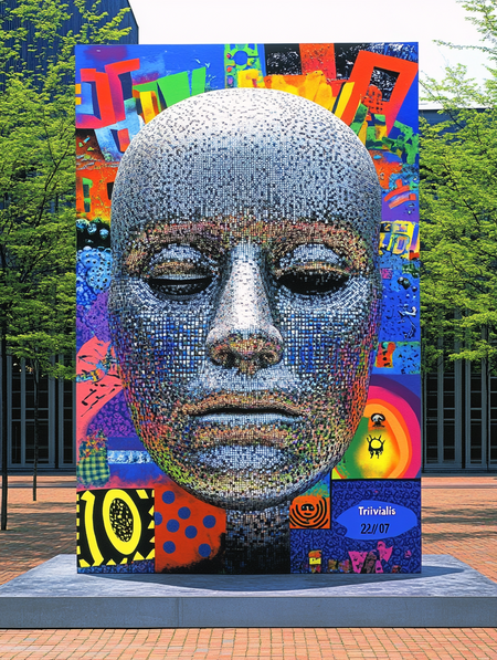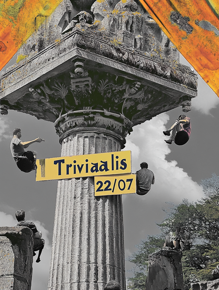 Промт для значка: «simple metal pin „Trivialis“, font Helvetic, bold» + сгенерированный плакат, как стиль и сгенерированное лого, как изображение.