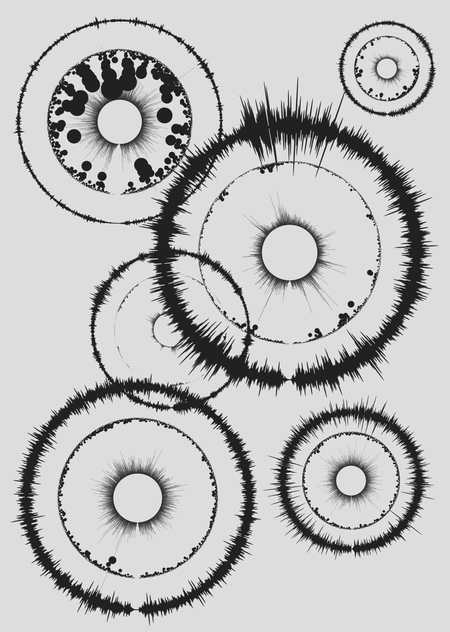 Эта серия генеративных постеров вдохновлена многообразием звукового ландшафта и предлагает взглянуть на привычное звучание окружающего мира через призму визуального. На каждом постере представлена визуализация звука того или иного пространства, «звуковой пейзаж», нарисованный на основе анализа частоты и амплитуды звукозаписи.