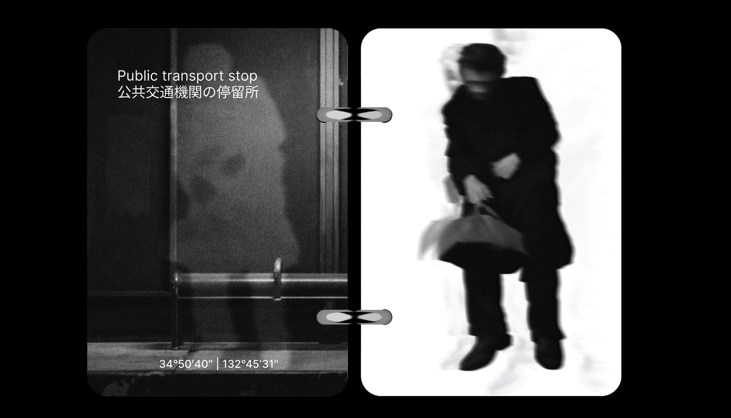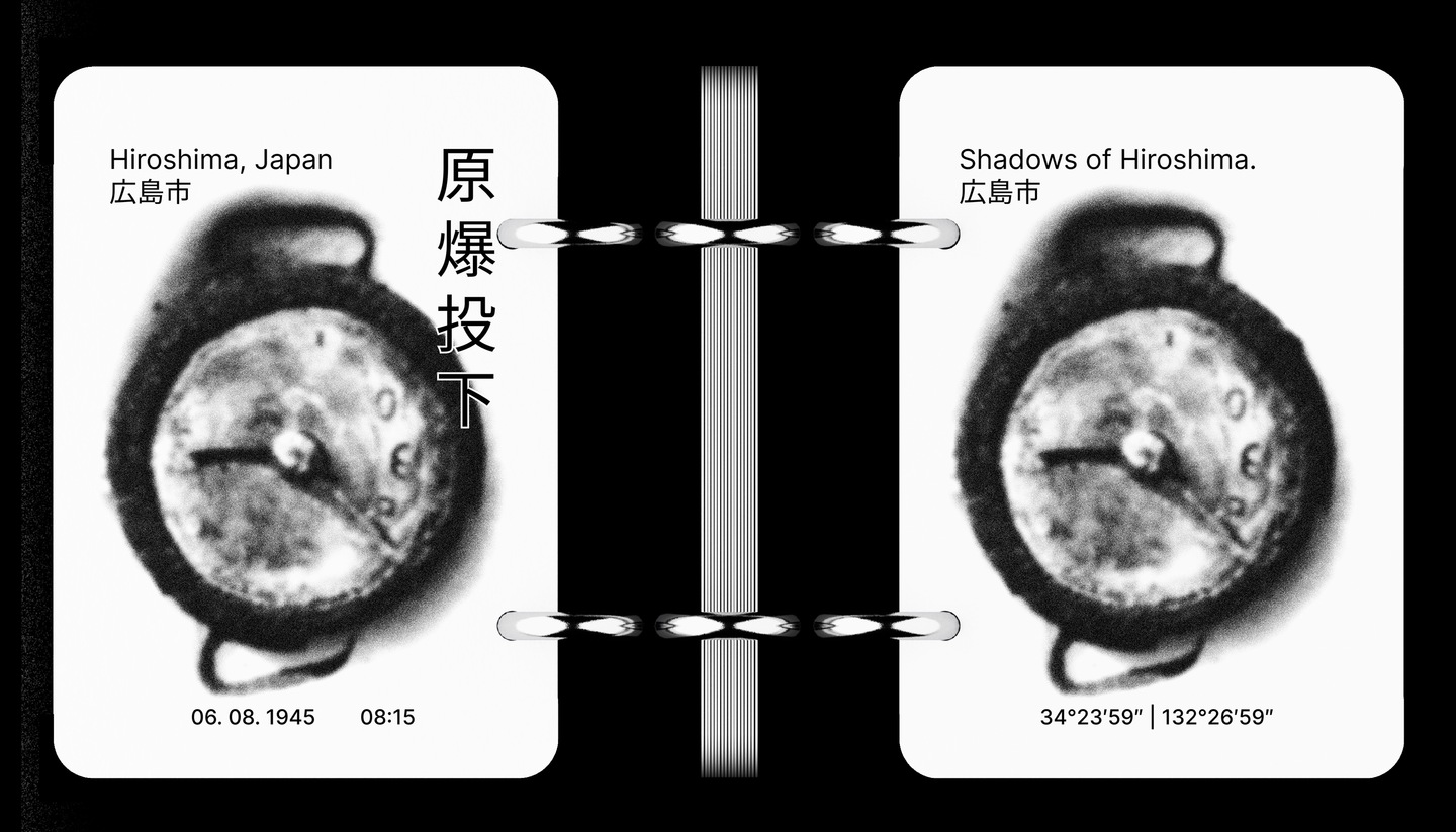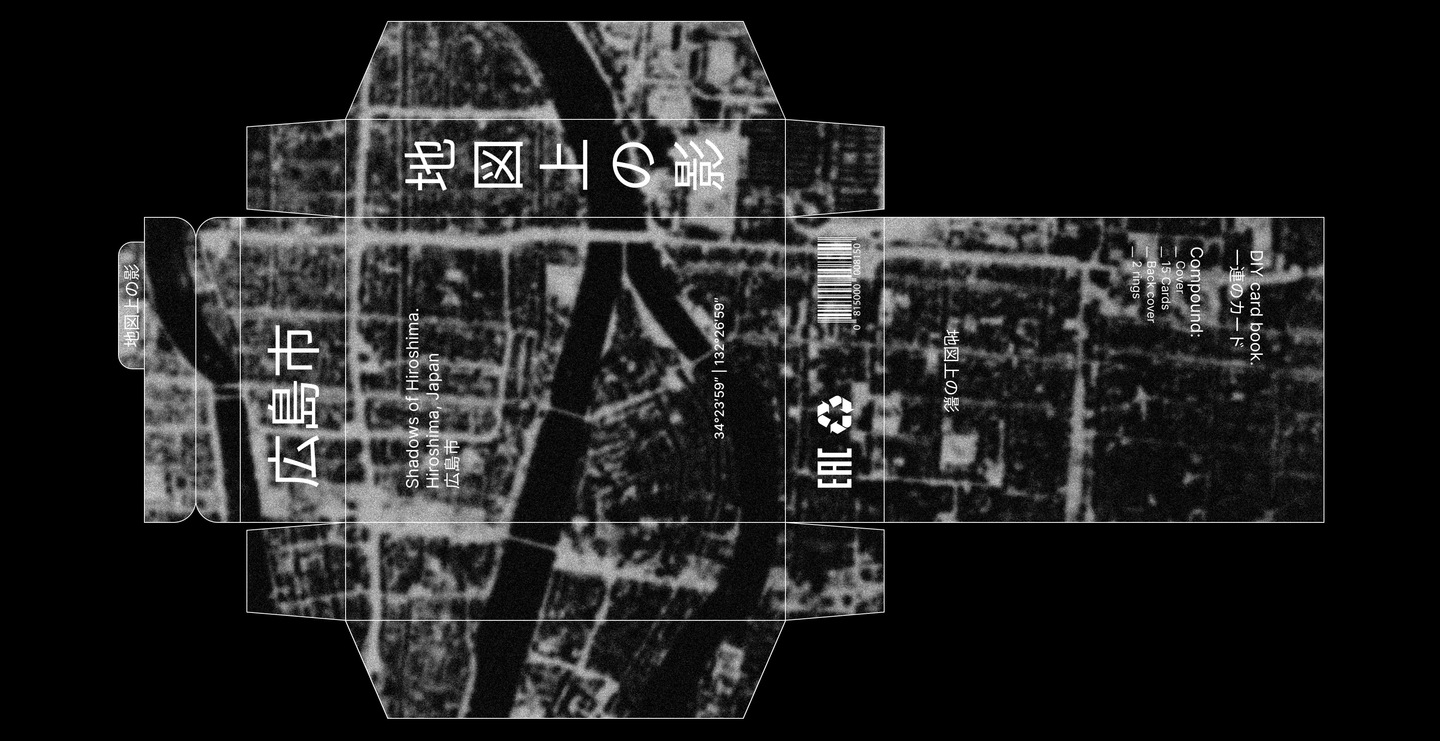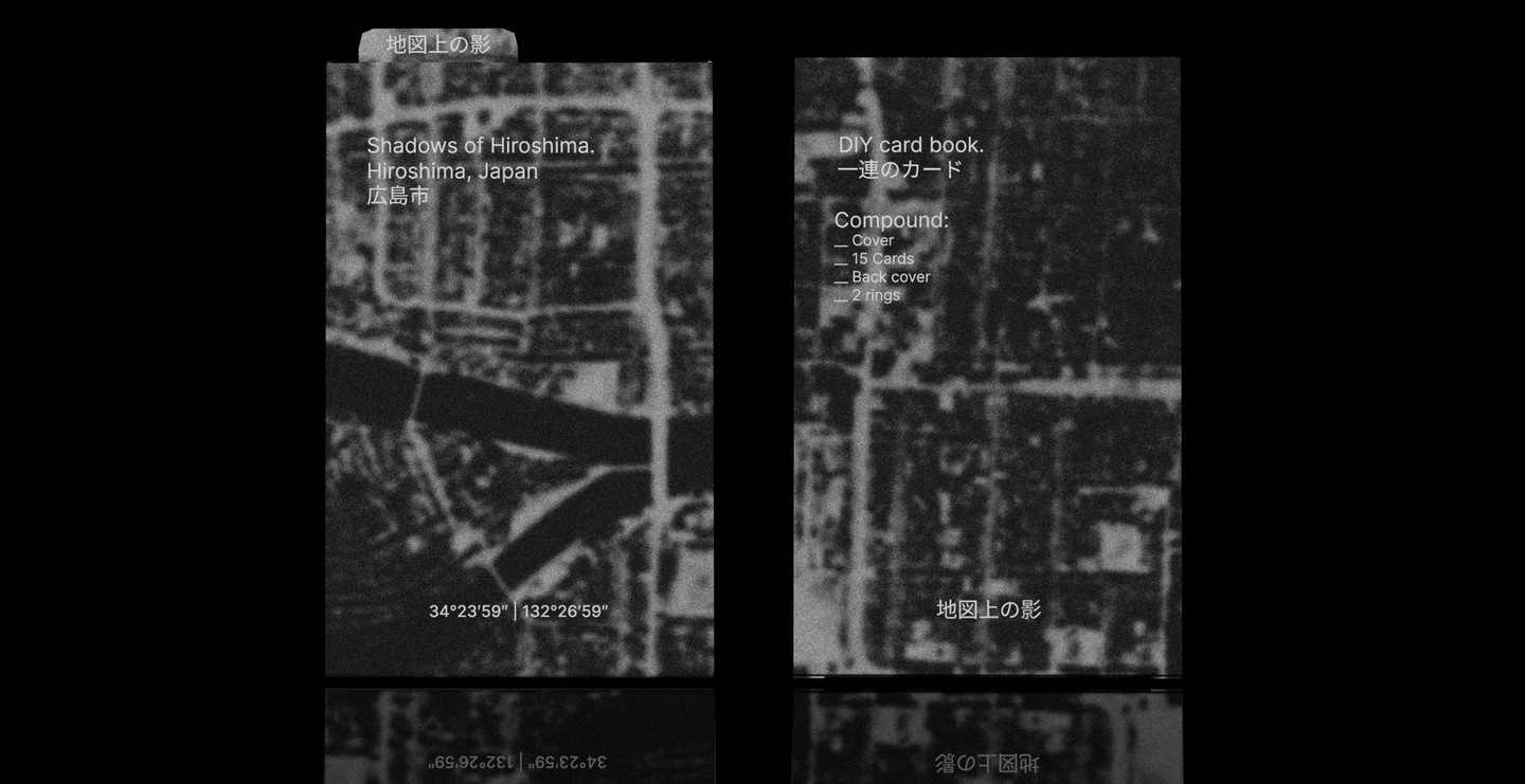 Концепция проекта — запечатление людей в пространстве во время атомной бомбардировки. С одной стороны карты располагаются тени в городской среде, с указанием координат, с другой — иллюстрации людей до гибели в пелене взрывной волны.
